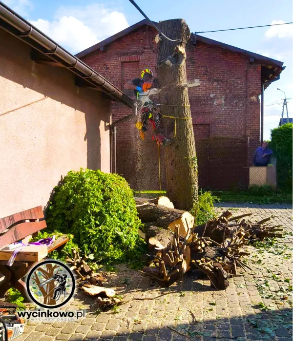 W naszej firmie od lat stosujemy cięcia tego rodzaju. To nie tylko bezpieczne, ale i precyzyjne — obniżamy ryzyko uszkodzenia ogrodzenia czy dachu budynku. Jednocześnie pamiętamy o przepisach: jeśli wycinka drzew wymaga zgłoszenia albo drzewo objęte jest ochroną gatunkową, najpierw należy dopełnić formalności, by nie narazić się na konsekwencje. Oczywiście, na życzenie Klienta również i w tym pomożemy.